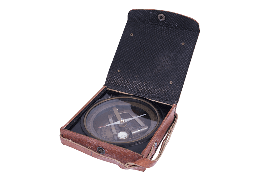 Brass compass with old style finishing. Delivered with a leather case, and strap.