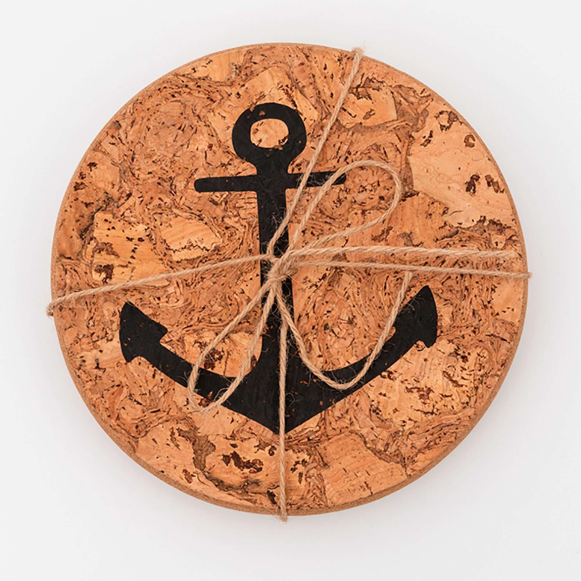 A Set of 4 cork round table mats with an anchor design bringing a touch of nautical Sea Style to your home or boat. Set of 4.