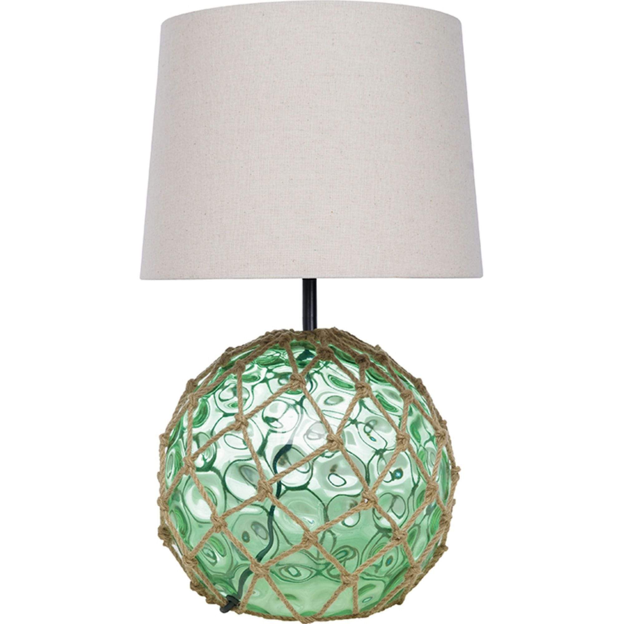 Large table lamp with clear glass base, with jute rope detailing, designed to look like a nautical buoy. Complete with lamp shade.Complete with UK plug.