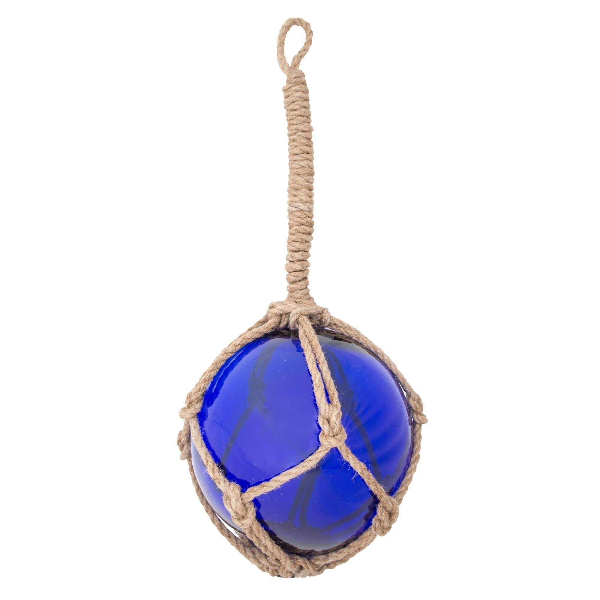 Beautiful high end replica of a glass buoy, wrapped in rope, with hanging loop..