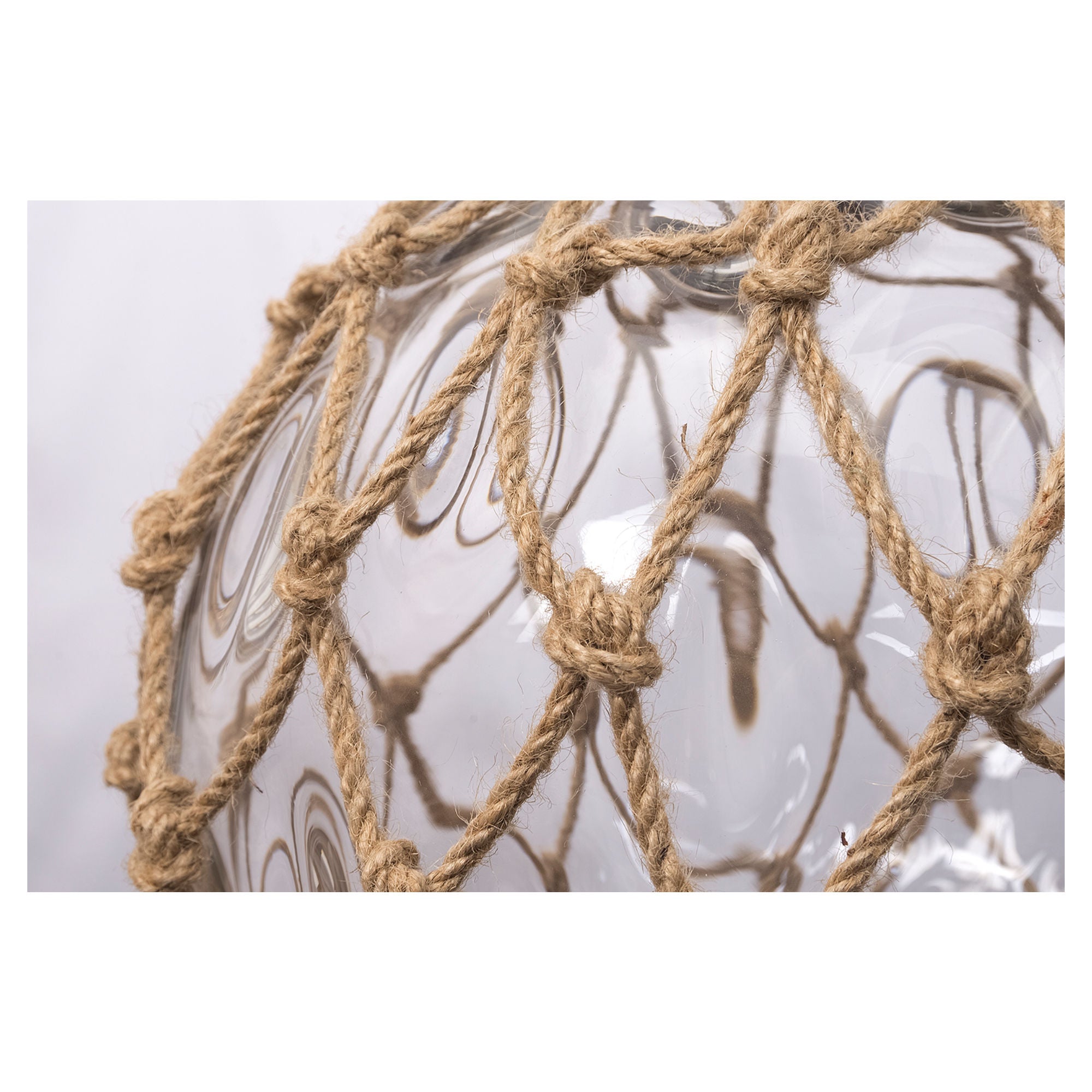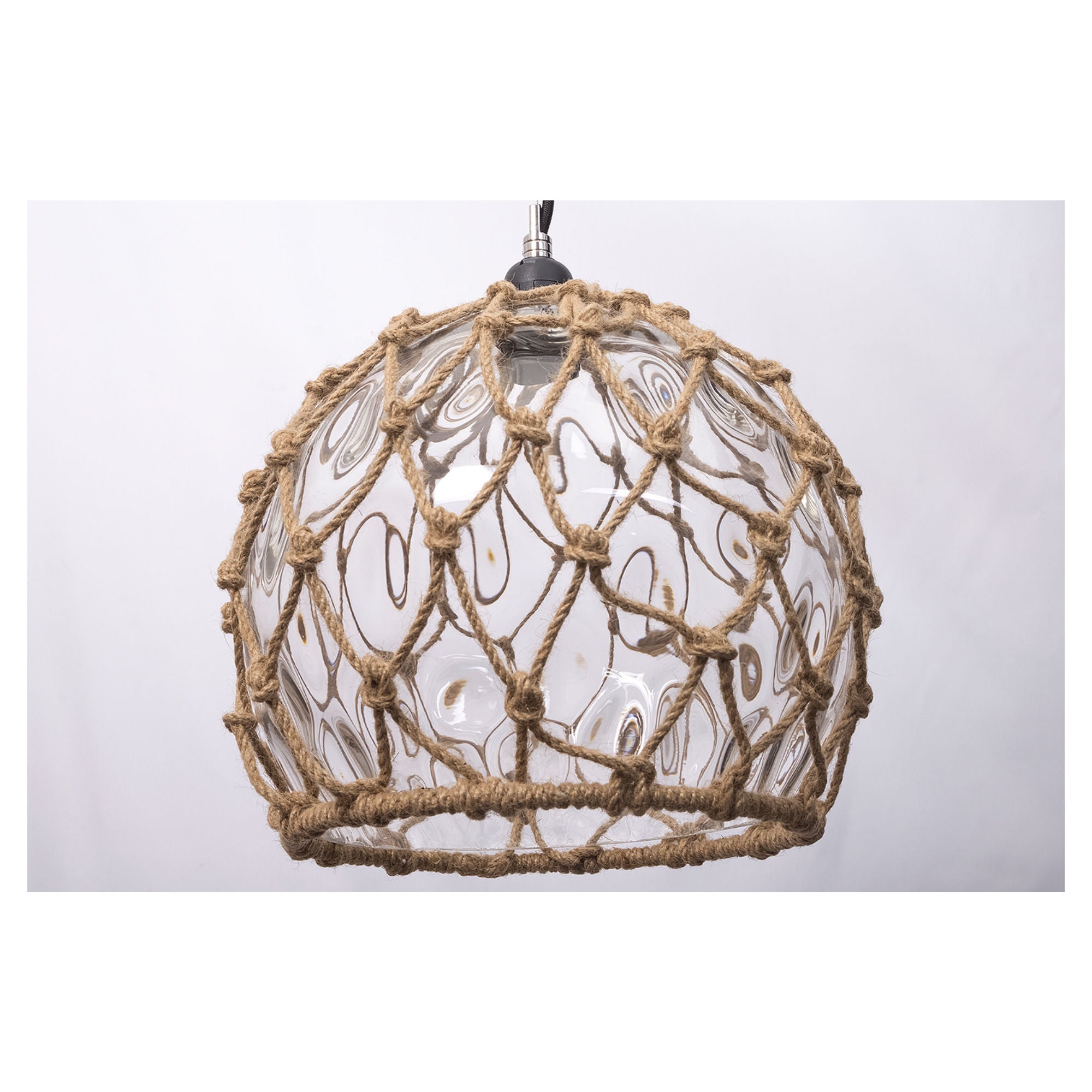 Ceiling light fitting with a single clear glass shade, surrounded with jute robe detailing, designed to look like nautical buoys. Complete with ceiling fittings and rose.