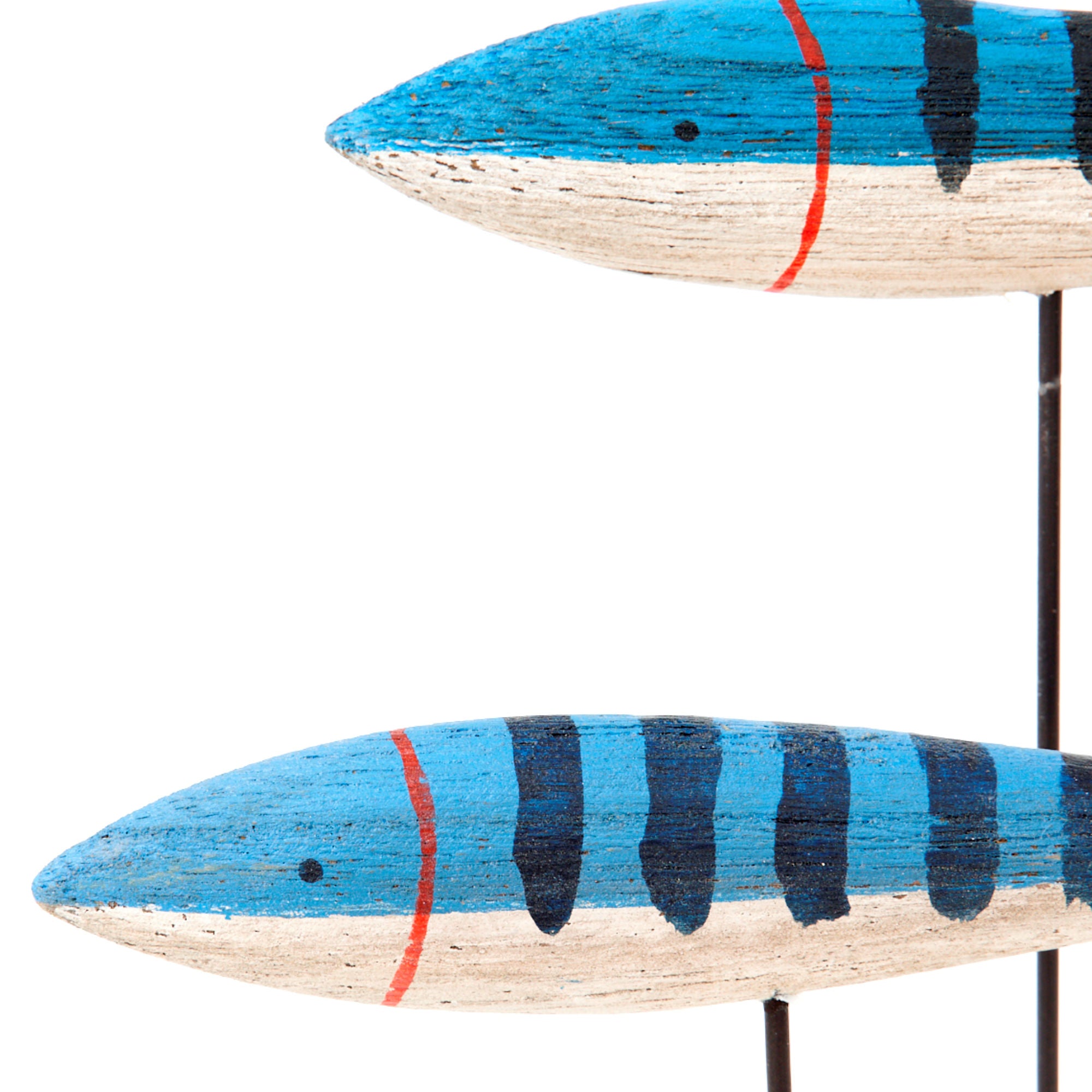 This decorative shoal of blue-striped fish on a wooden stand is very eye-catching and a great ornamental feature.