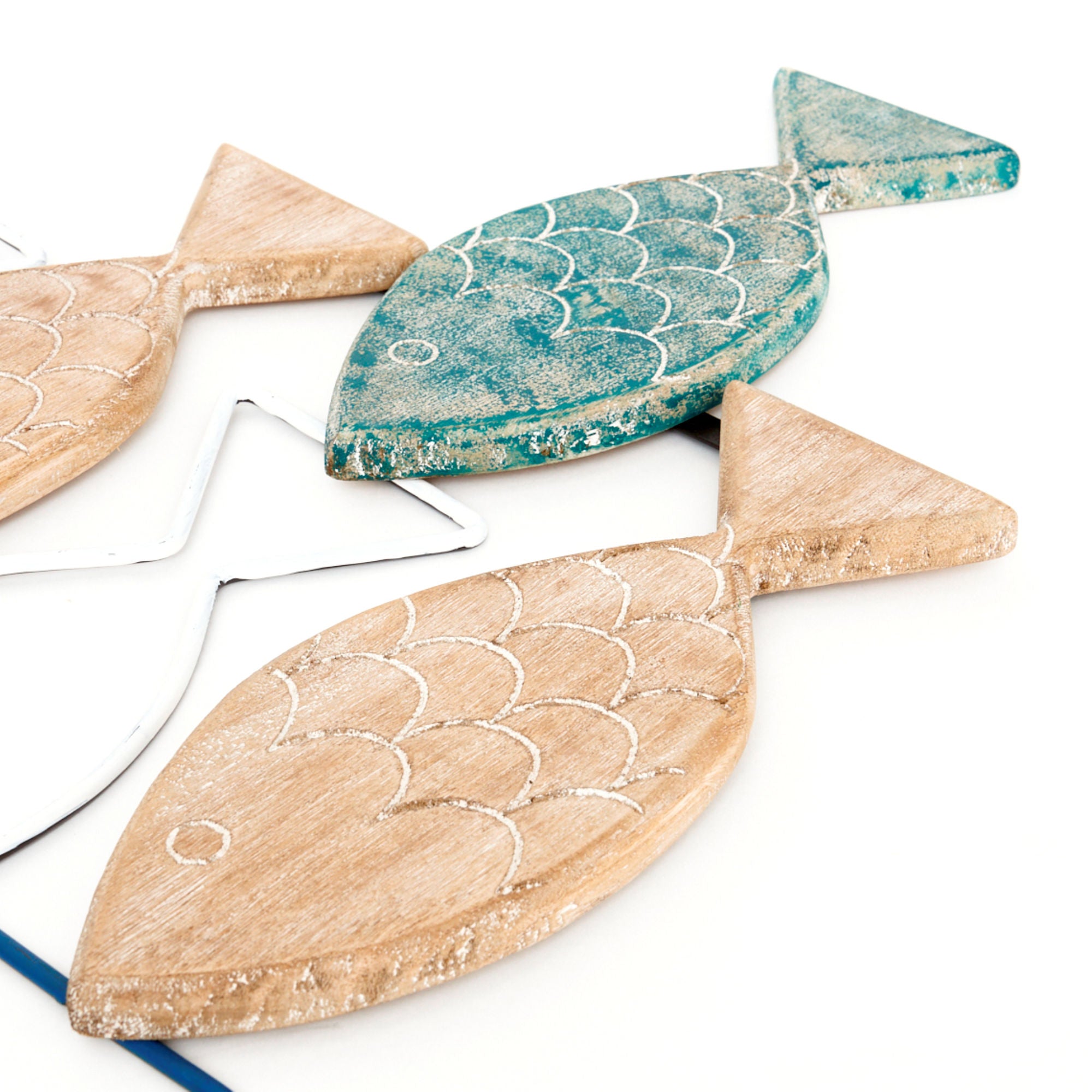 Sculpted from wood and metal this attractive wall art hanging depicts a shoal of fish, and will most certainly add a touch of Sea-Style charm to your home.