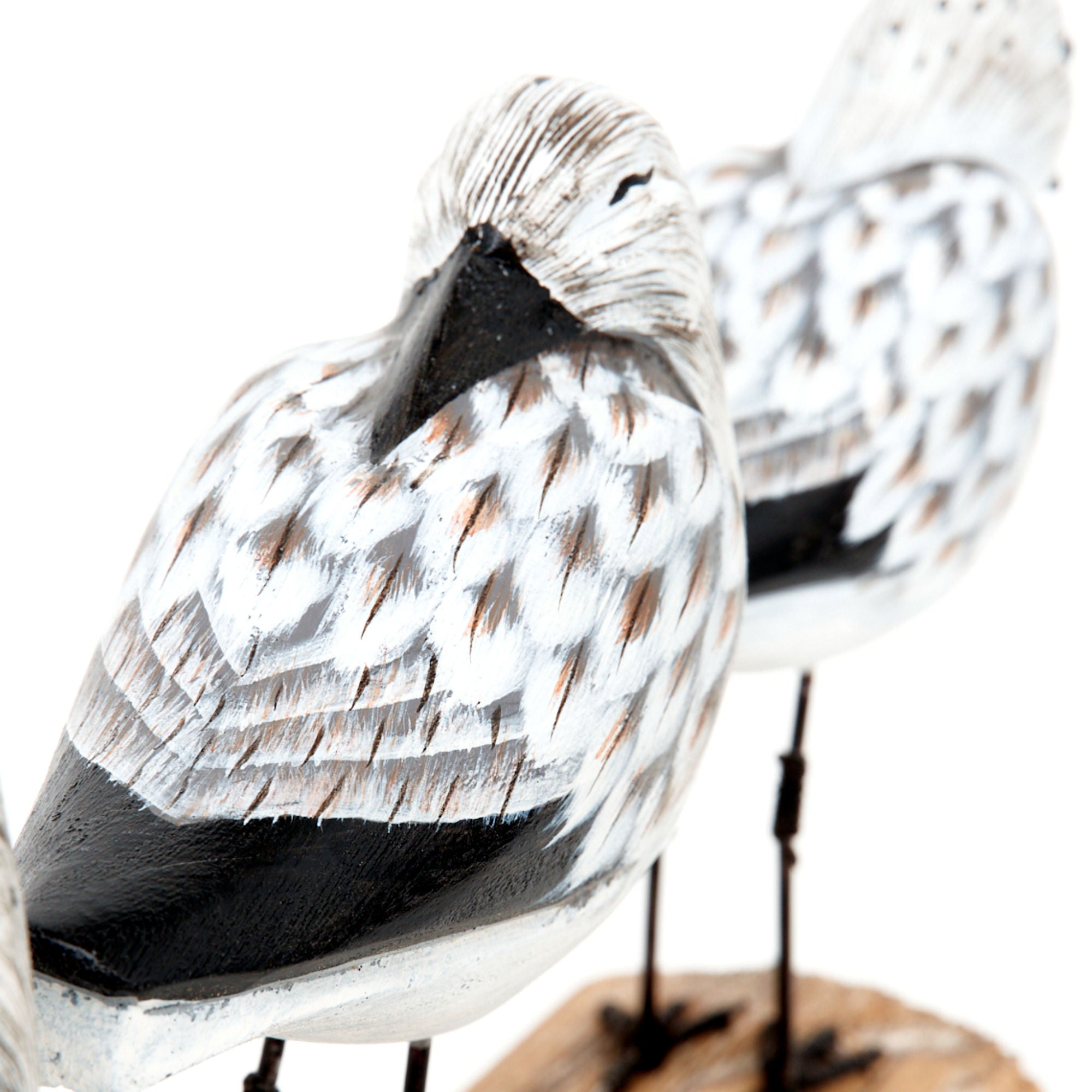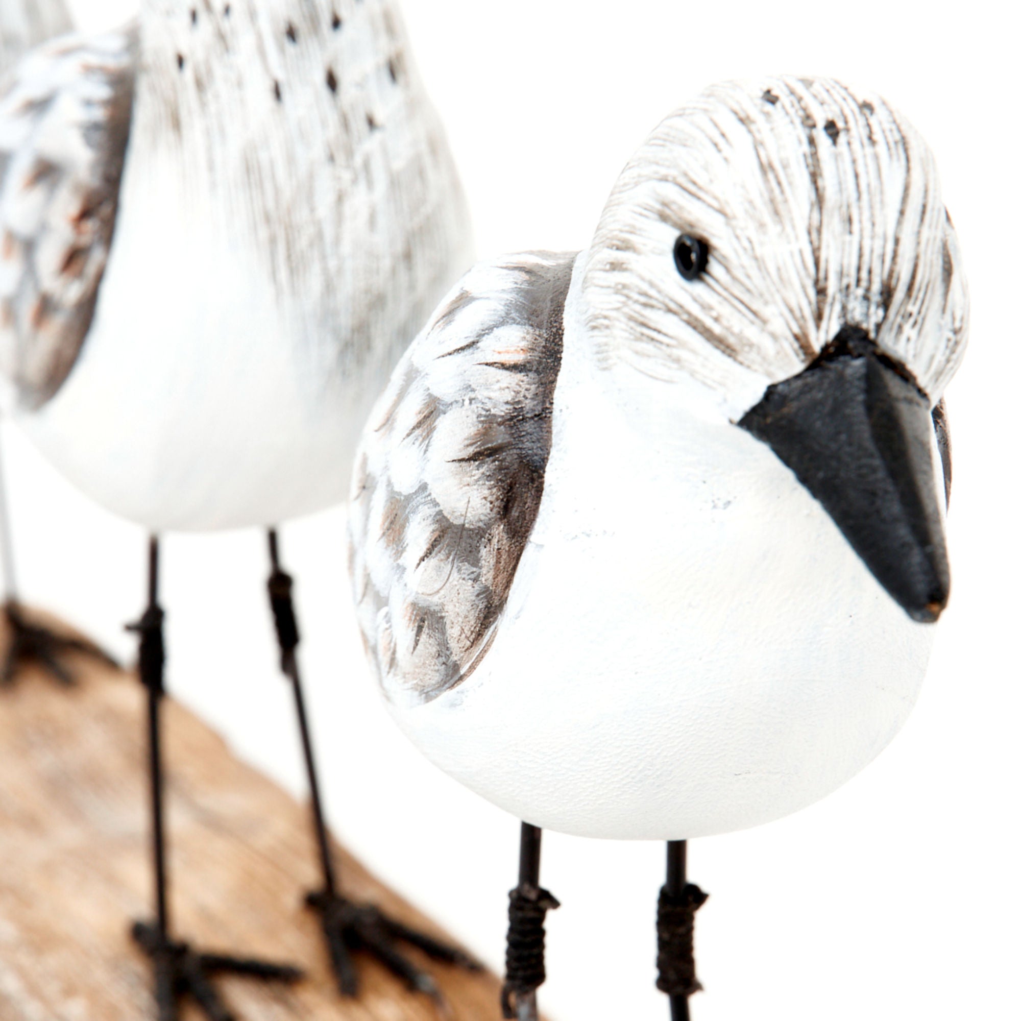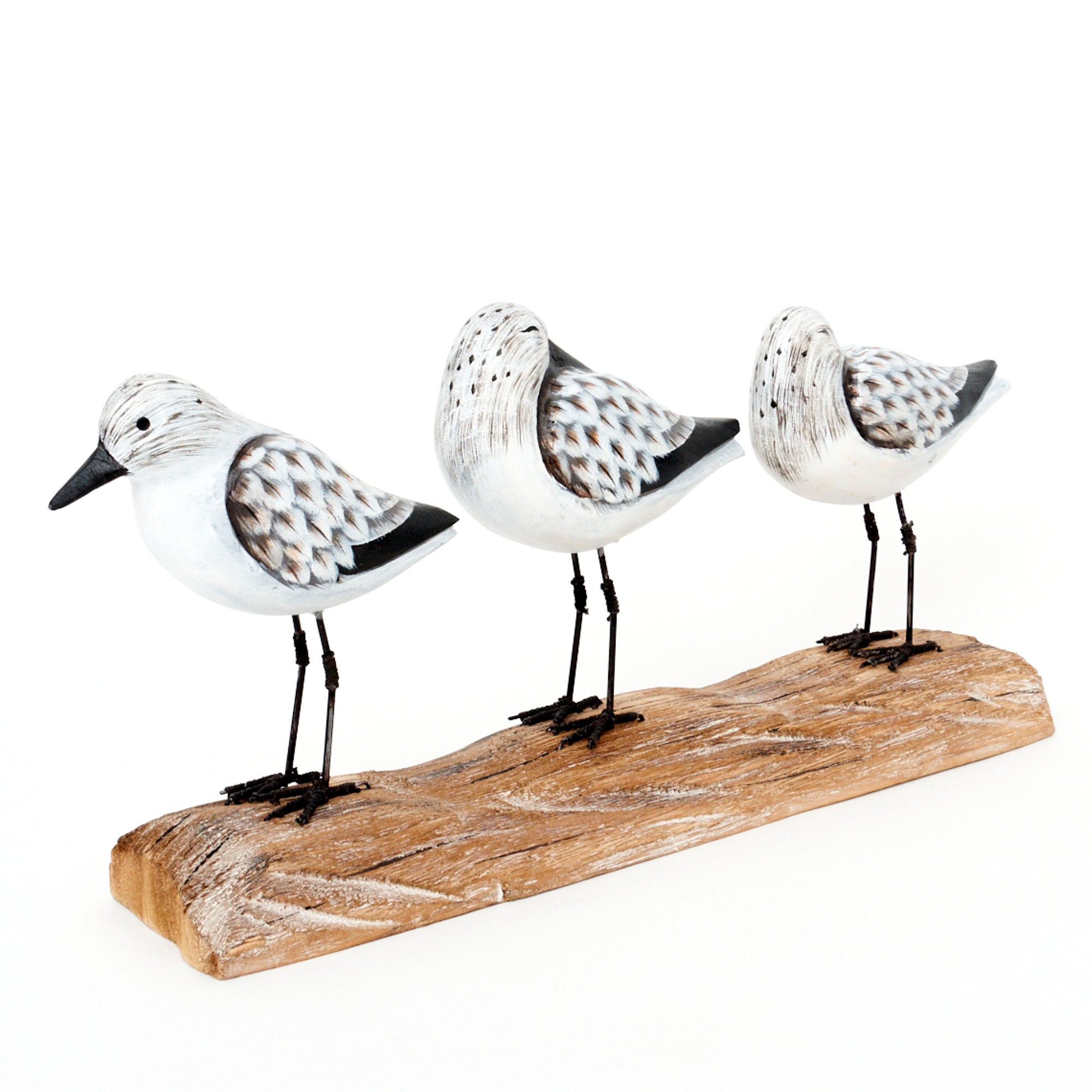 This trio of sea birds with a driftwood-style stand is reminiscent of the seaside and will add a touch of sea-style to your home. sculpted from wood, with steel legs and a shabby chic neutral/black colouring. Great for a gift, or bringing the sea into your home.