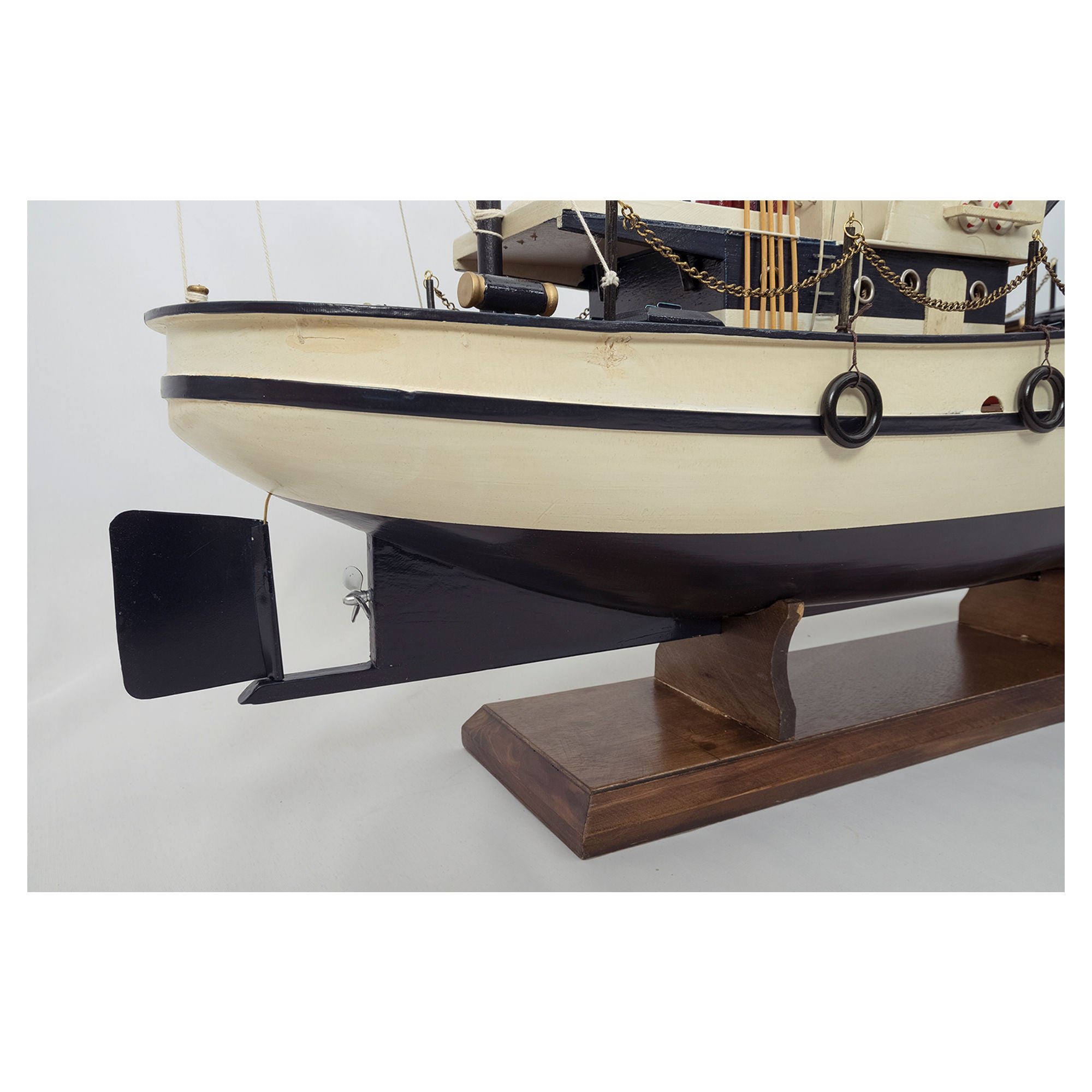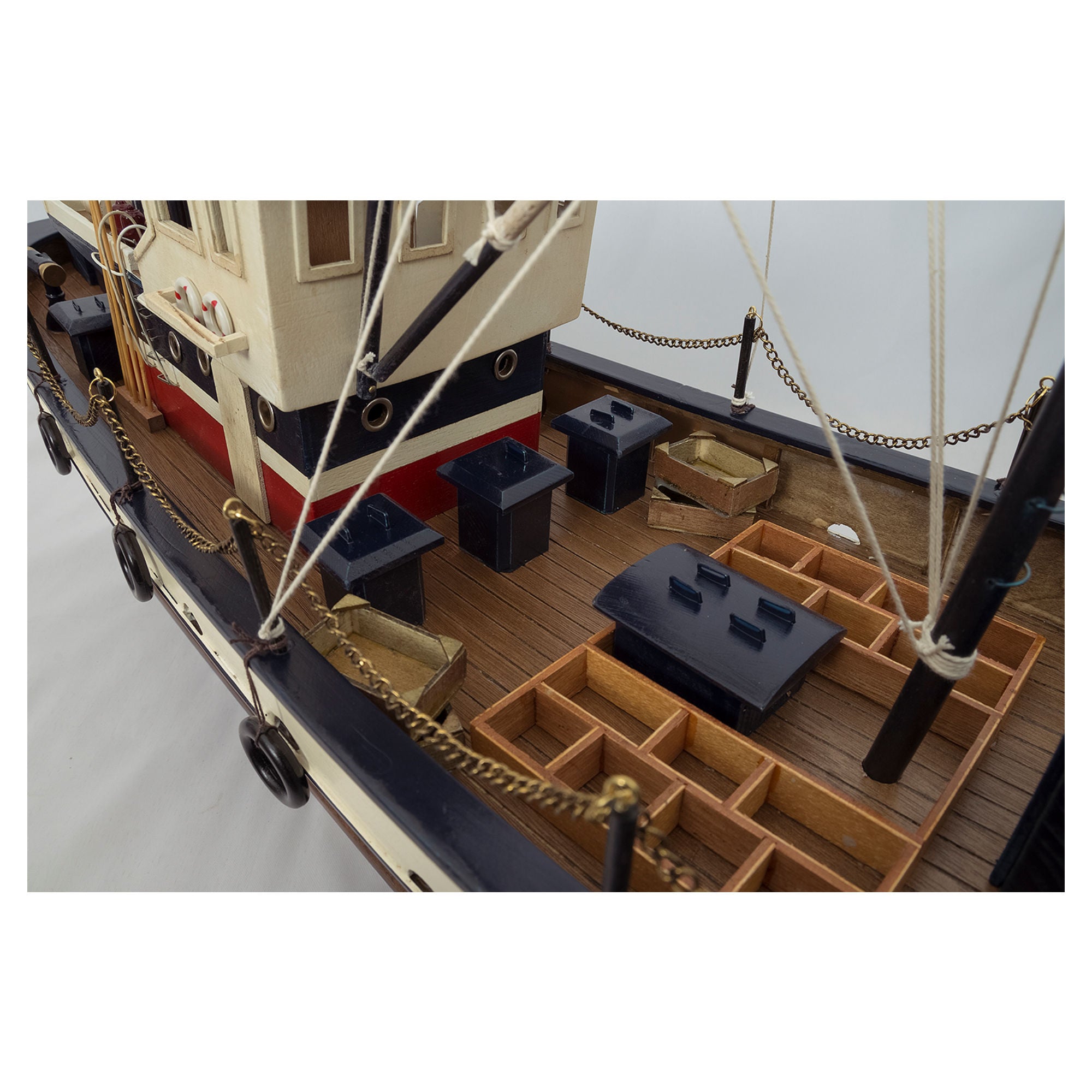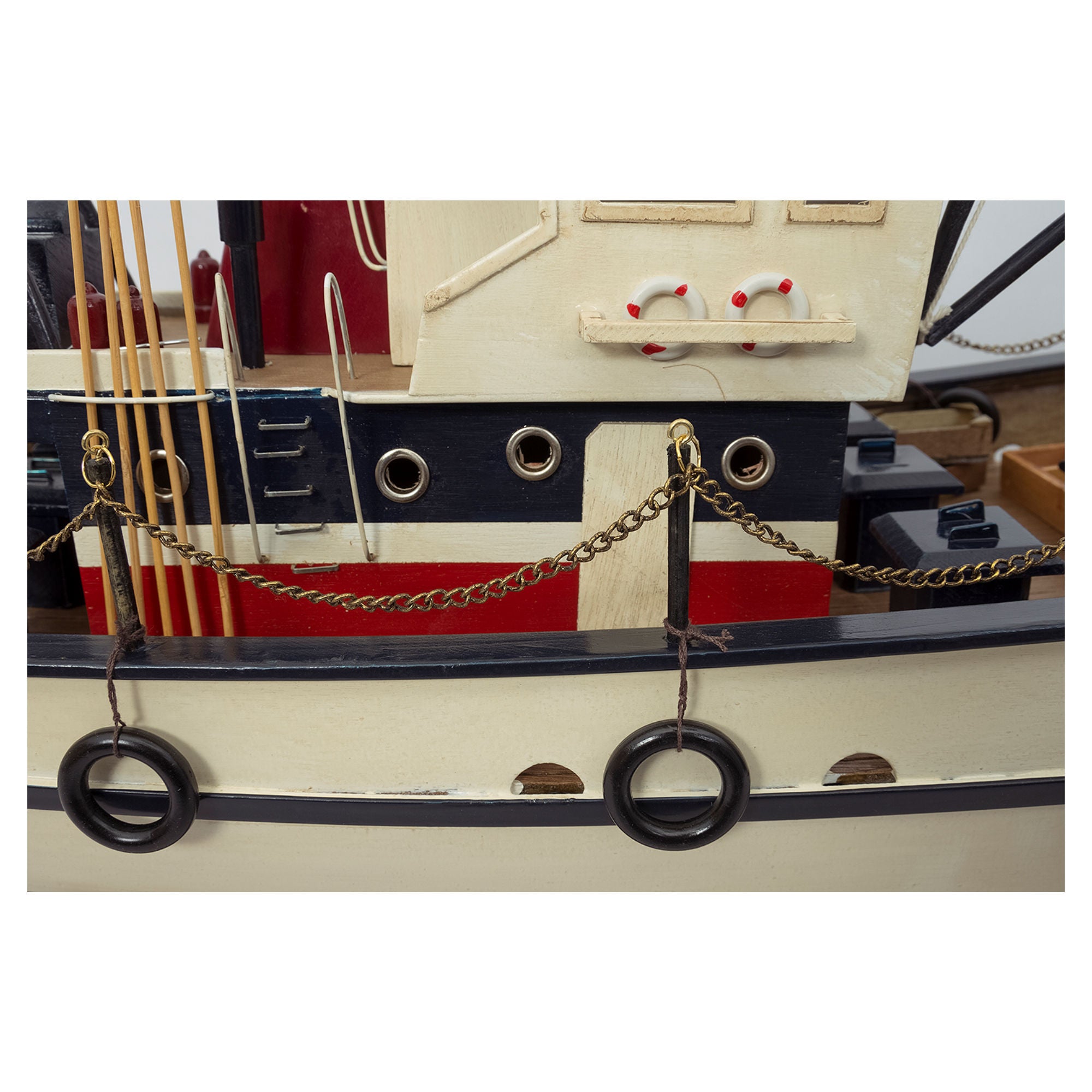 A replica model fishing boat from the seafood fishing industry. Made from wood.