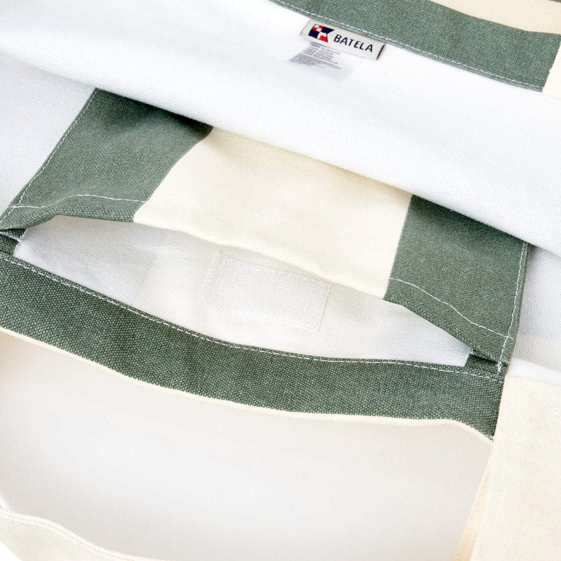 Stylish and practical canvas tote bag., Green/White wide stripes. Ideal for both town and beach use.