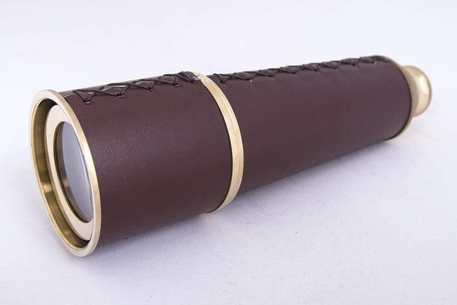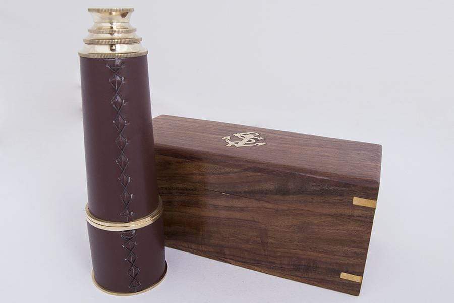 Beautifully made telescope made of brass and leather. Comes in a wooden box with anchor detail.